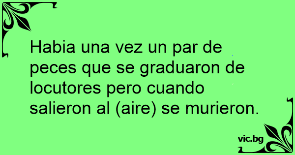Habia una vez un par de peces que se graduaron de locutores pero cuando salieron al (aire) se murieron.