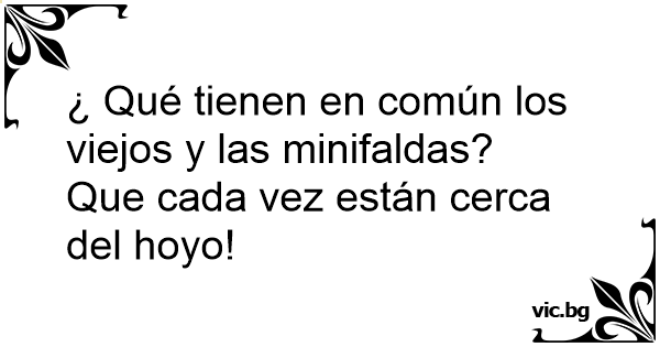 ¿ Qué tienen en común los viejos y las minifaldas?Que cada vez están cerca del hoyo! 12 0 0 Chistes verdes