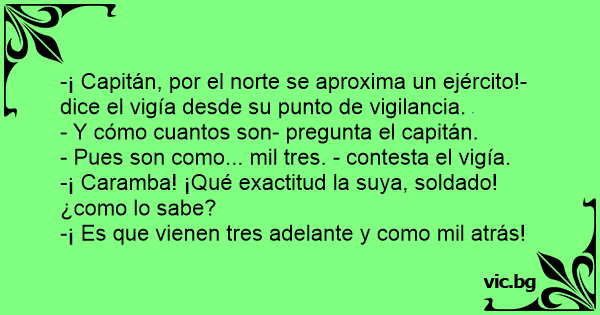-¡ Capitán, por el norte se aproxima un ejército!- dice el vigía desde su punto de vigilancia.