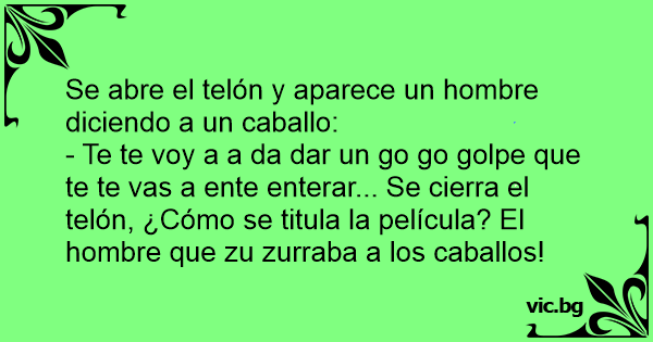 - Te te voy a a da dar un go go golpe que te te vas a ente enterar... Se cierra el telón, ¿Cómo se titula la película? El hombre que zu zurraba a los caballos!