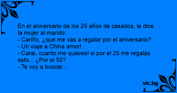 En el aniversario de los 25 años de casados, le dice la mujer al marido: