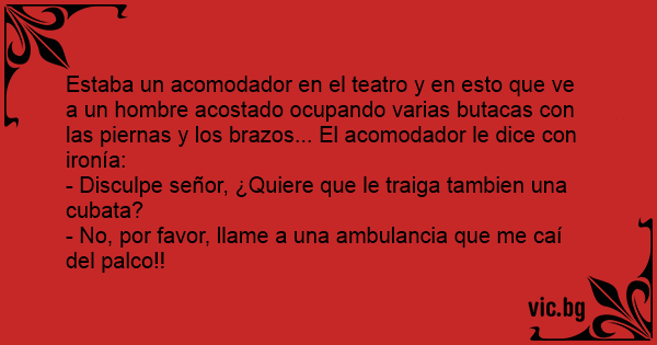 Estaba un acomodador en el teatro y en esto que ve a un hombre acostado ocupando varias butacas соn las piernas y los brazos... El acomodador le dice соn ironía: