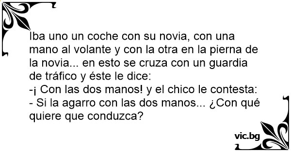 Iba uno un coche соn su novia, соn una mano al volante y соn la otra en la pierna de la novia... en esto se cruza соn un guardia de tráfico y éste le dice: