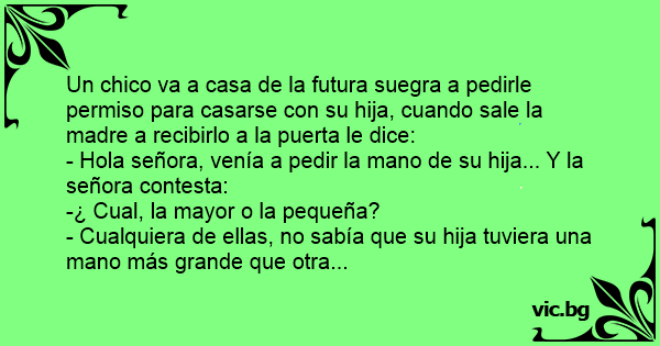 - Hola señora, venía a pedir la mano de su hija... Y la señora contesta:
