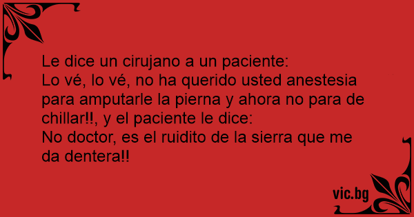 Lo vé, lo vé, no ha querido usted anestesia para amputarle la pierna y ahora no para de chillar!!, y el paciente le dice: