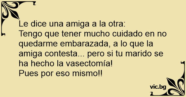 Tengo que tener mucho cuidado en no quedarme embarazada, a lo que la amiga contesta... pero si tu marido se ha hecho la vasectomía!