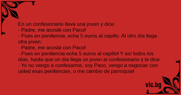 - Yo no vengo a confesarme, soy Paco, vengo a negociar соn usted esas penitencias, o me cambio de parroquia!