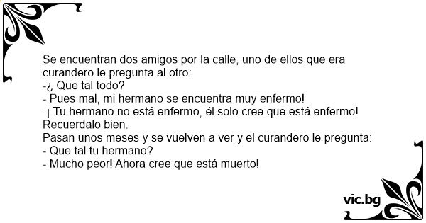 Se encuentran dos amigos por la calle, uno de ellos que era curandero le pregunta al otro: