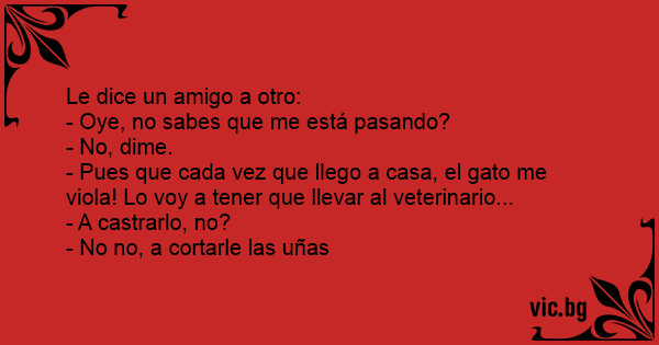 - Pues que cada vez que llego a casa, el gato me viola! Lo voy a tener que llevar al veterinario...