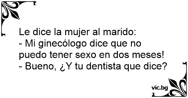 На забар Squeaky Clean Doctor's Appointment Tomorrow Zahnarzt-Termin Ραντεβού στον γυναικολόγο Ραντεβού με τον οδοντίατρο Една вечер след като семейна двойка си легнали, мъжът нежно потупал съпругата си по рамото. Тя: Ночь. Мужу не спится, хочется, и он теребит жену. Она отвечает: One night, a couple is in the bed and the husband smoothly caresses their wife's arm... the wife is turned and she tells him: Un couple vient de se coucher. L'homme dit à sa femme : - Скъпи, гинекологът ми каза, две седмици никакъв секс! Ένα βράδυ ένα ζευγάρι έχει πέσει για ύπνο. Ο άνδρας αρχίζει να χαϊδεύει τη γυναίκα του απαλά. Αυτή γυρίζει και του λέει : A lady tells her husband, “My gynecologist said I can’t have sex for two weeks.” He replies, “What did your dentist say?” Un soir, alors qu’un couple se couche, le mari commence à caresser le bras de sa femme. Elle se retourne et lui dis: "Je suis désolé chéri, j’ai un rendez-vous chez le gynécologue demain et je veux rester ‘fraîche’." Le mari déçu se retourne. Quelques minutes plus tard, il se tourne de nouveau... Una pareja se acuesta en la cama, y el marido empieza a tocar a su esposa. La mujer se resiste y dice: - Lo siento amor, pero mañana temprano tengo cita con el ginecólogo y quiero estar fresca. Entonces el esposo le contesta: - Ok, pero con el dentista no tienes cita? Чоловік каже до жінки: — Люба, займімось любов’ю? Жінка: — Мені не можна, завтра до гінеколога йти! Чоловік образився, відвернувся до стінки. За декотрий час повертається й питає: — А до стоматолога тобі не треба? C'est un couple qui vient de se coucher. Le type a vraiment envie de faire l'amour. Mais sa compagne réplique qu'elle a un rendez-vous chez le gynécologue et elle veut rester fraîche. Un peu plus... Mitt i natten vaknar mannen, kryper ner till hustrun och gör några försiktiga närmanden. - Nej, det går inte, säger frun bestämt. Imorgon ska jag till gynekologen. Mannen tänker efter, kryper... Eheleute liegen im Bett und er hat Lust auf Sex. Seine Frau lehnt ab, weil sie am nächsten Tag einen Gynäkologentermin hat und deshalb möchte sie jetzt nicht. Er dreht sich zur Seite und versucht... Mann og kone ligger i senga en kveld når mannen prikker kona på skulderen og beginner å klappe armen hennes. Kona snur seg og sier «Beklager kjære. Jeg skal til gynekologen i morgen og vil være ren... Ein Ehepaar ist zu Bett gegangen und nach einer Weile deutet er an, dass er Sex haben will. Sie lehnt ab: "Ich habe morgen einen Termin beim Gynäkologen und deshalb mag ich jetzt nicht." Er dreht... Emiel ligt al de halve nacht te woelen. Op een gegeven moment maakt hij zijn vrouw wakker en zegt: "Schatje, ik heb zo'n zin om met je te vrijen?" Zijn vrouw zegt: "Uhhh .... nee liefje, dat kan... Wife comes back from the doctor and says to her husband: Honey, I have a sad news - a gynecologist told me not have sex for a three weeks... Husband: And what the dentist said? Na cama, o sujeito começa a acariciar a mulher, mas ela o repele: — Sinto muito, querido, mas amanhã eu tenho uma consulta no ginecologista e... — Já entendi — diz o marido, contrariado. E depois... „Schatz, mein Frauenarzt sagt wir können erstmal keinen Sex haben.“ …„und was sagt dein Zahnarzt?“ Para nowożeńców leży w łóżku wieczorem, kiedy facet nabrał ochoty na seks, pochyla się w stronę żony i puka ją lekko w ramię. Ona odwraca się do niego i mówi: - Nie możemy się dzisiaj kochać, rano... Na, Schatz, wie wär’s… wollen wir heute Abend mal wieder…? - Bitte heute nicht, Du weißt doch, dass ich morgen einen Termin beim Frauenarzt habe! - Na ja, aber Du hast doch nicht auch noch einen... Un uomo si sveglia eccitatissimo nel mezzo della notte. Sveglia la moglie e le propone una sveltina. Ma la moglie risponde: - 'Domani ho un appuntamento con il ginecologo. Sai che non voglio farlo... Eräänä iltana pariskunta makaa sängyllä ja aviomies taputtaa vaimoa olkapäälle ja alkaa hieromaan vaimon käsivartta. Vaimo kääntyy ja sanoo: - Sori kulta, tapaan huomenna gynekologin ja haluan... Det är natt, och mannen kryper närmare hustrun. - Det går inte, jag ska till gynekologen imorgon, säger frun. Han drar tillbaka handen. Men efter en liten stund frågar mannen hoppfullt. - Men du... Killen låg i sängen och trevade efter tjejen, i hopp om att få något. - Nej, inte ikväll sa tjejen. Jag ska till gynekologen imorgon bitti och vill vara någorlunda fräsch. Sedan blev det tyst,... Barbatul:Nevasta, nu ai chef de sex? Nevasta:Nu pot ca maine merg la ginecolog, B: (dupa 5 minute)Da la dentist te duci?? - Min gynekolog sa att jag inte kan ha sex på två veckor. - Jaha, men din tandläkare har väl inte avrådit från sex…