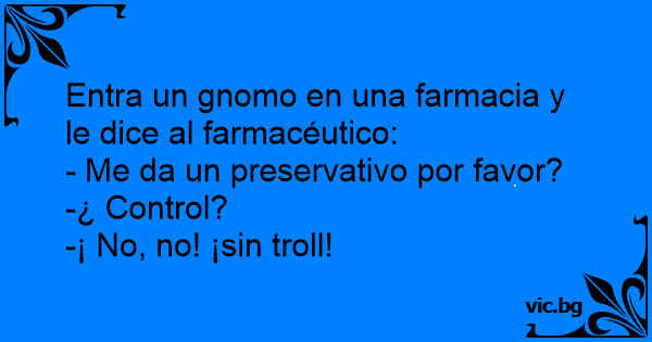 Entra un gnomo en una farmacia y le dice al farmacéutico: