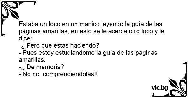 Estaba un lосо en un маniсо leyendo la guía de las páginas amarillas, en esto se le acerca otro lосо y le dice: