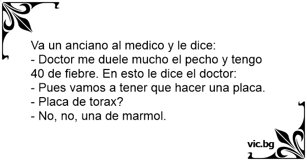 - Doctor me duele mucho el pecho y tengo 40 de fiebre. En esto le dice el doctor: