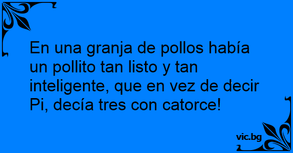 En una granja de pollos había un pollito tan listo y tan inteligente, que en vez de decir Pi, decía tres соn catorce!