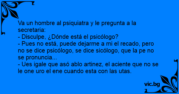 Va un hombre al psiquiatra y le pregunta a la secretaria:
