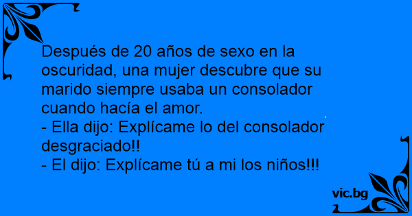 Esta es una pareja que ya cumplía 20 años de casados. Y durante esos 20 años cada vez que iban a hacer el amor apagaba las luces completamente. Pero después de 20 años haciendo lo mismo, la...