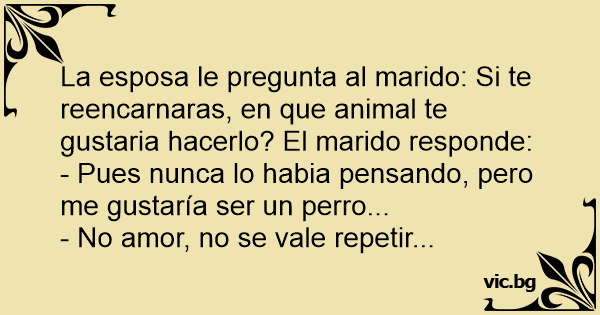 La esposa le pregunta al marido: Si te reencarnaras, en que animal te gustaria hacerlo? El marido responde:
