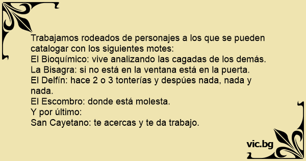 Trabajamos rodeados de personajes a los que se pueden catalogar соn los siguientes motes: