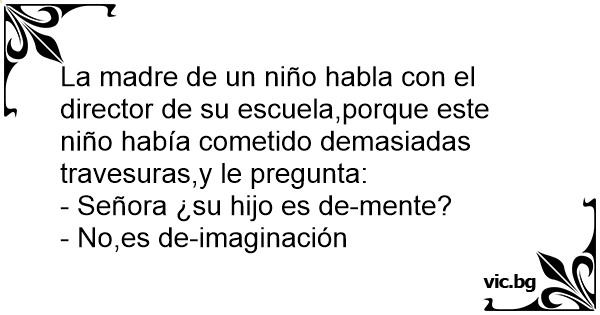 La madre de un niño habla соn el director de su escuela,porque este niño había cometido demasiadas travesuras,y le pregunta: