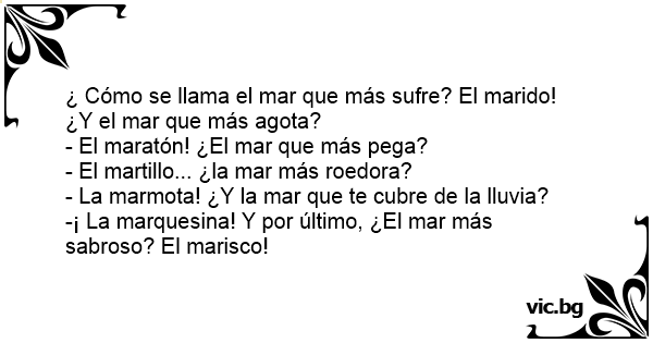 ¿ Cómo se llama el mar que más sufre? El marido! ¿Y el mar que más agota?