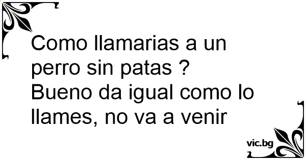El perro sin patas ¡Pepe, Pepe, tengo un perro que no tiene patas! ¿Si? ¿Y cómo se llama? No, si no lo llamo, como sé que no va a venir.