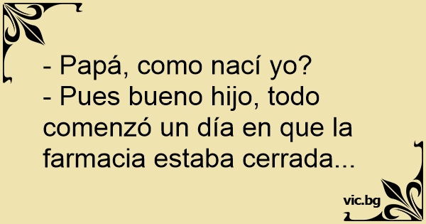 - Pues bueno hijo, todo comenzó un día en que la farmacia estaba cerrada...