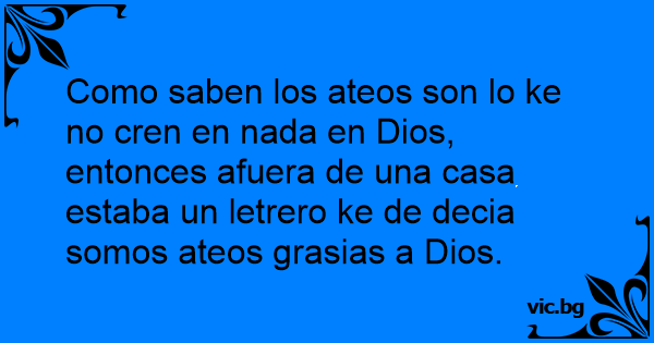Como saben los ateos son lo ke no cren en nada en Dios, entonces afuera de una casa estaba un letrero ke de decia somos ateos grasias a Dios.