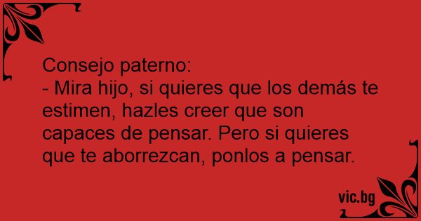 - Mira hijo, si quieres que los demás te estimen, hazles creer que son capaces de pensar. Pero si quieres que te aborrezcan, ponlos a pensar.