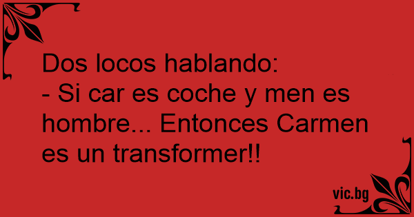 - Si car es coche y men es hombre... Entonces Carmen es un transformer!!