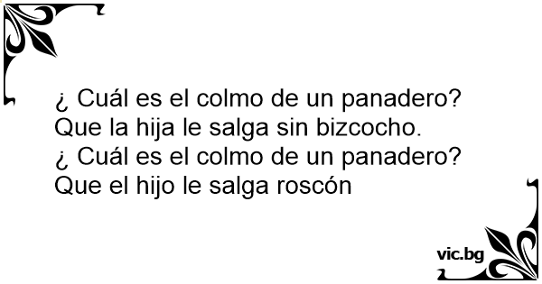 ¿ Cuál es el colmo de un panadero? Que la hija le salga sin bizcocho.