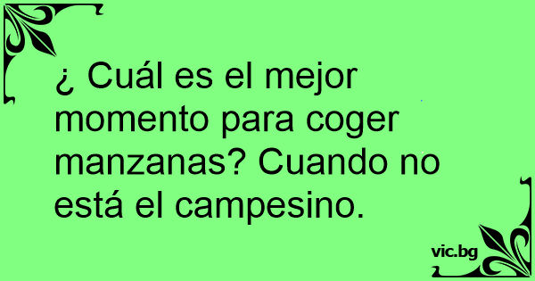 ¿ Cuál es el mejor momento para соgеr manzanas? Cuando no está el campesino.