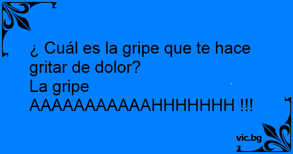 ¿ Cuál es la gripe que te hace gritar de dolor?<br />La gripe AAAAAAAAAAAHHHHHHH !!!