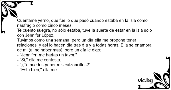 Cuéntame yerno, que fue lo que pasó cuando estaba en la isla como naufragio como cinco meses.