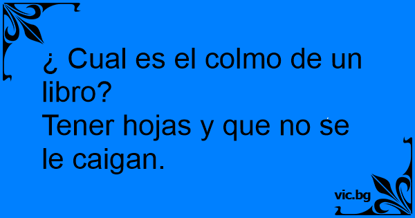 ¿ Cual es el colmo de un libro? Tener hojas y que no se le caigan.