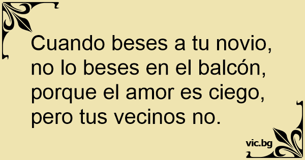 Cuando beses a tu novio, no lo beses en el balcón, porque el amor es ciego, pero tus vecinos no.