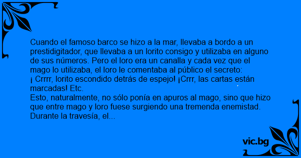Esto, naturalmente, no sólo ponía en apuros al mago, sino que hizo que entre mago y loro fuese surgiendo una tremenda enemistad.