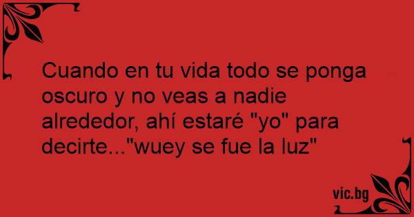 Cuando en tu vida todo se ponga oscuro y no veas a nadie alrededor, ahí estaré "yo" para decirte..."wuey se fue la luz"