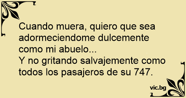 Cuando muera, quiero que sea adormeciendome dulcemente como mi abuelo...