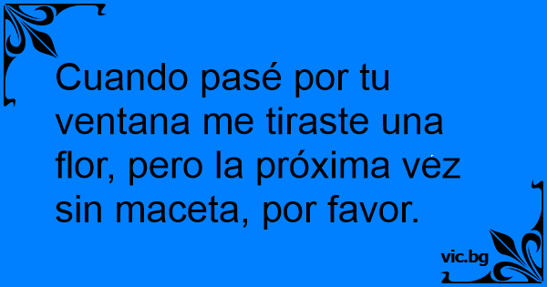 Cuando pasé por tu ventana me tiraste una flor, pero la próxima vez sin maceta, por favor.