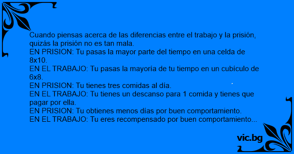 Cuando piensas acerca de las diferencias entre el trabajo y la prisión, quizás la prisión no es tan mala.