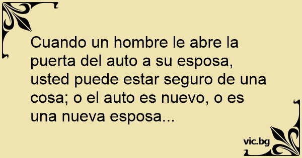 Cuando un hombre le abre la puerta del auto a su esposa, usted puede estar seguro de una cosa; o el auto es nuevo, o es una nueva esposa...