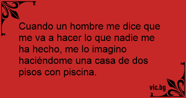 Cuando un hombre me dice que me va a hacer lo que nadie me ha hecho, me lo imagino haciéndome una casa de dos pisos соn piscina.