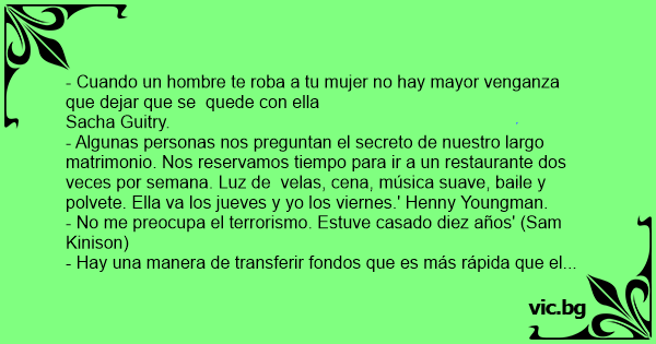 - Cuando un hombre te roba a tu mujer no hay mayor venganza que dejar que se quede соn ella