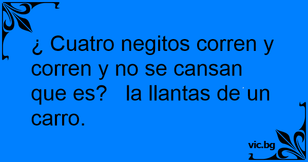 ¿ Cuatro negitos corren y corren y no se cansan que es? la llantas de un carro.