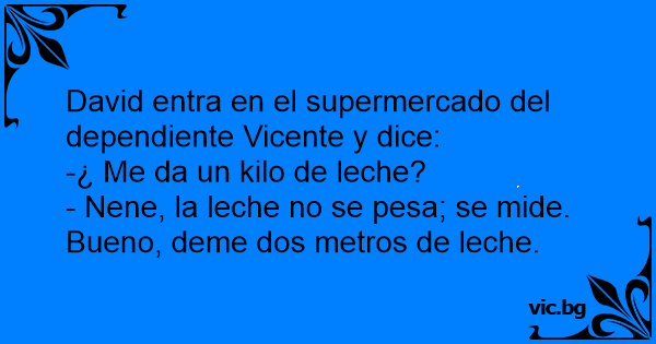 - Nene, la leche no se pesa; se mide. Bueno, deme dos metros de leche.