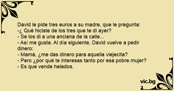 - Así me gusta. Al día siguiente, David vuelve a pedir dinero: