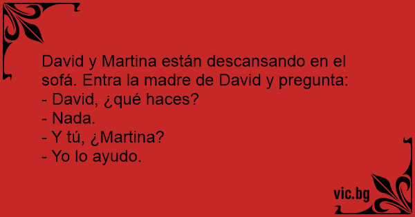 David y Martina están descansando en el sofá. Entra la madre de David y pregunta:
