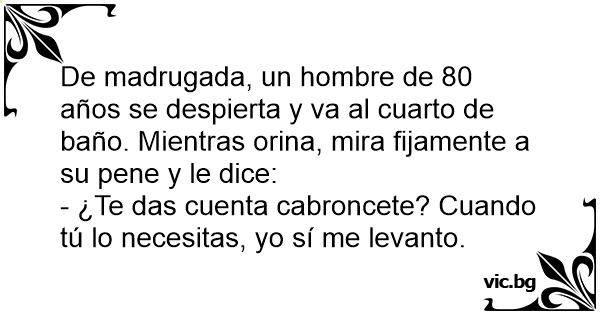 De madrugada, un hombre de 80 años se despierta y va al cuarto de baño. Mientras orina, mira fijamente a su pene y le dice: