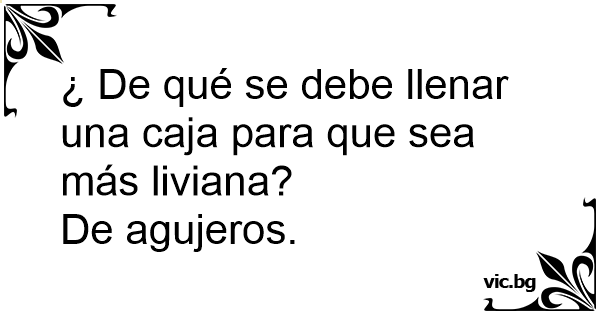¿ De qué se debe llenar una caja para que sea más liviana?
