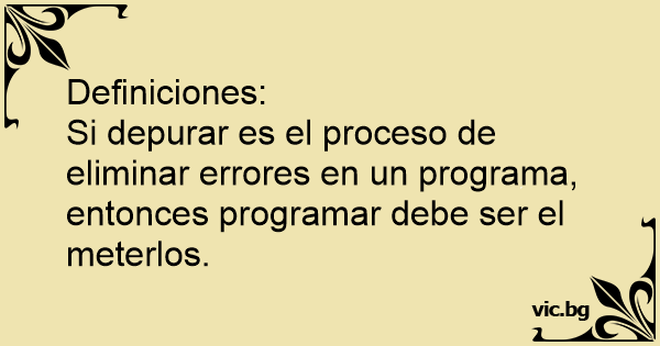 Si depurar es el proceso de eliminar errores en un programa, entonces programar debe ser el meterlos.